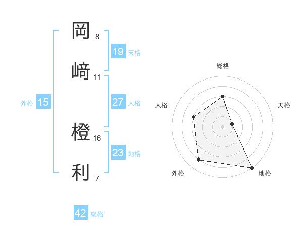 岡﨑 橙利さんを姓名の画数から五運を鑑定