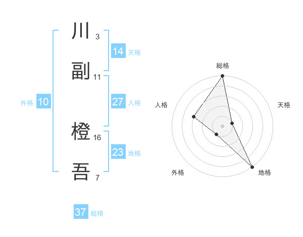 川副 橙吾さんを姓名の画数から五運を鑑定