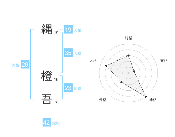 縄 橙吾さんを姓名の画数から五運を鑑定