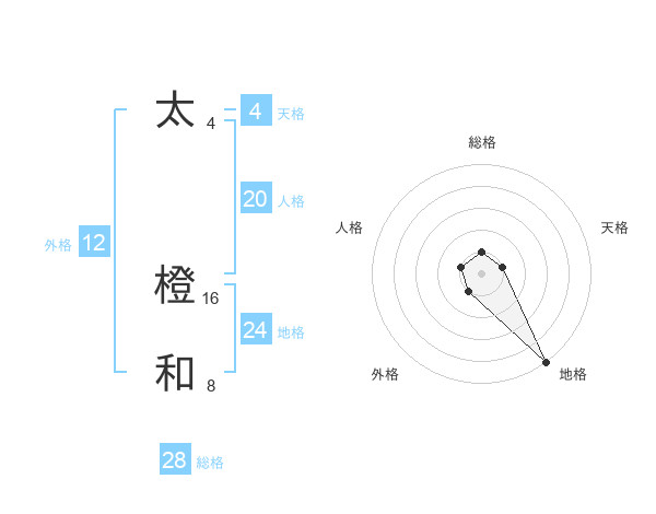 太 橙和さんの総格は28画の1点!