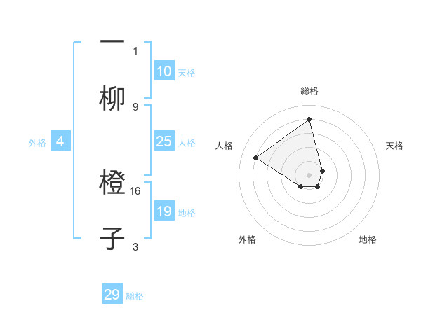 一柳 橙子さんの総格は29画の4点!