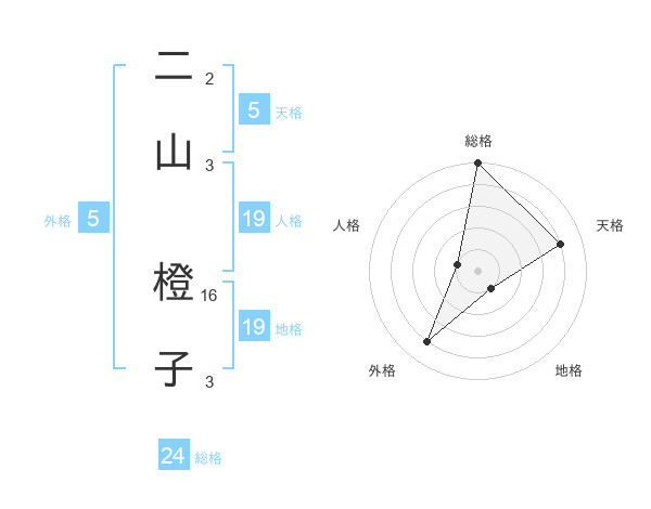 二山 橙子さんの天格は5画の4点!
