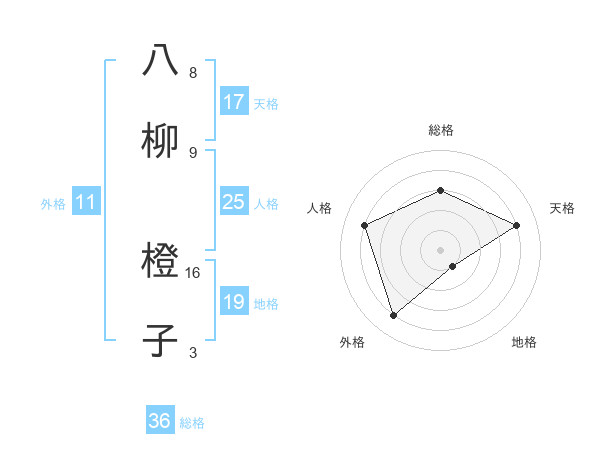 八柳 橙子さんの外格は11画の4点!