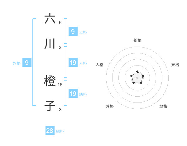 六川 橙子さんの総格は28画の1点!
