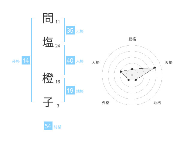 問塩 橙子さんの総格は54画の1点!