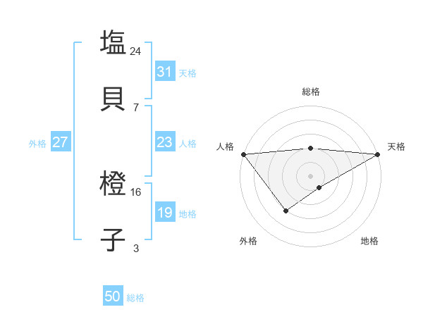塩貝 橙子さんを姓名の画数から五運を鑑定