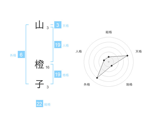 山 橙子さんの総格は22画の1点!