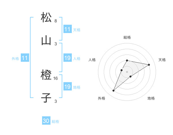 松山 橙子さんの天格は11画の4点!