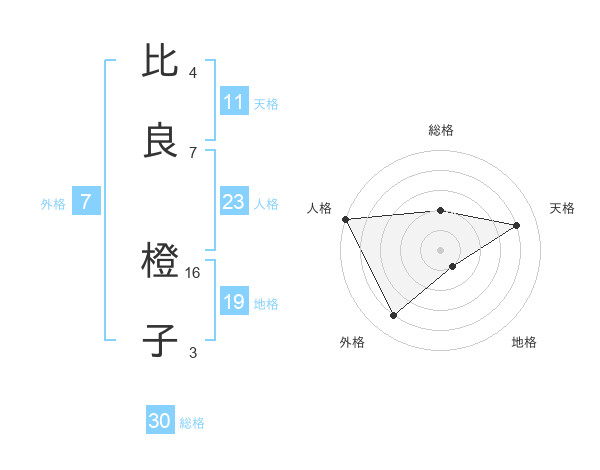 比良 橙子さんの外格は7画の4点!