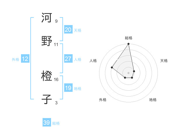 河野 橙子さんの総格は39画の5点!