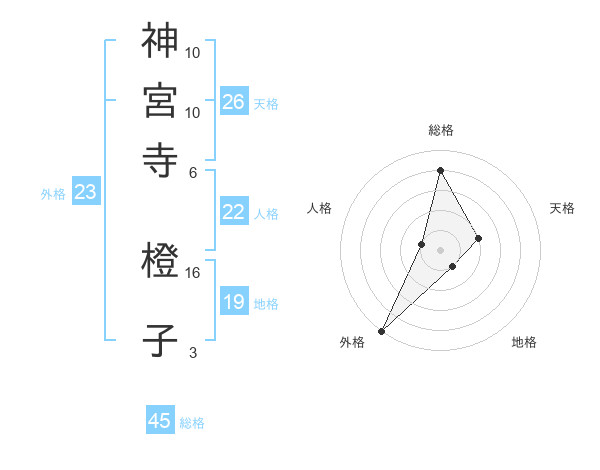 神宮寺 橙子さんの外格は23画の5点!