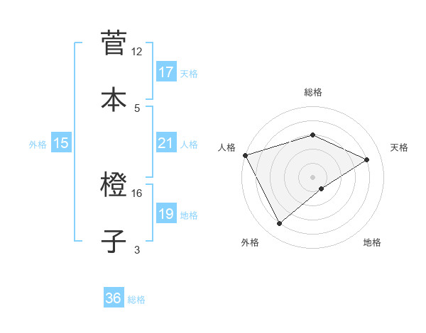 菅本 橙子さんを姓名の画数から五運を鑑定
