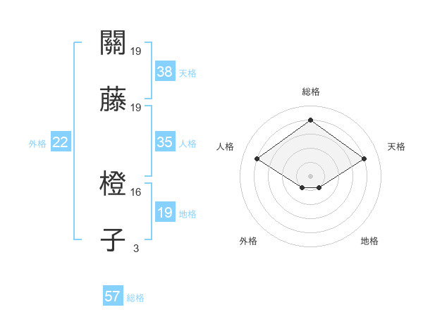關藤 橙子さんの天格は38画の4点!