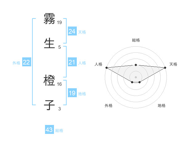 霧生 橙子さんの天格は24画の5点!