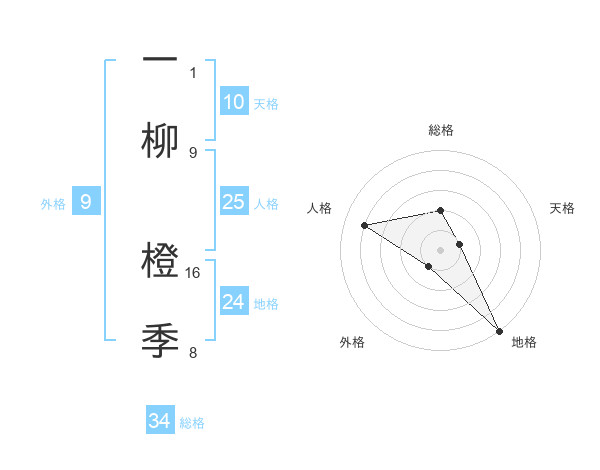 一柳 橙季さんを姓名の画数から五運を鑑定