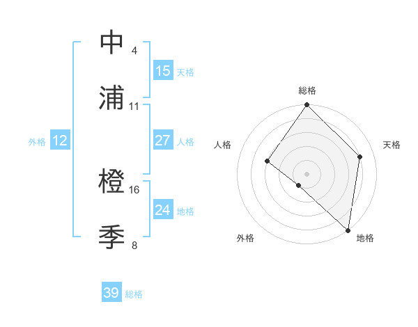中浦 橙季さんの総格は39画の5点!