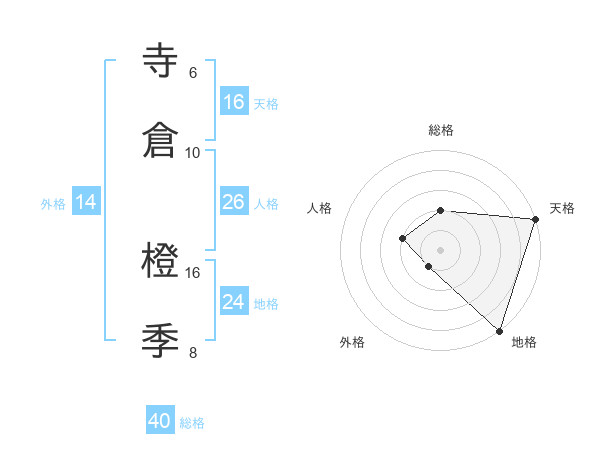 寺倉 橙季さんの総格は40画の2点!