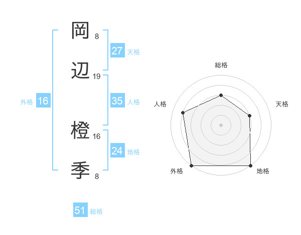 岡辺 橙季さんの総格は51画の3点!