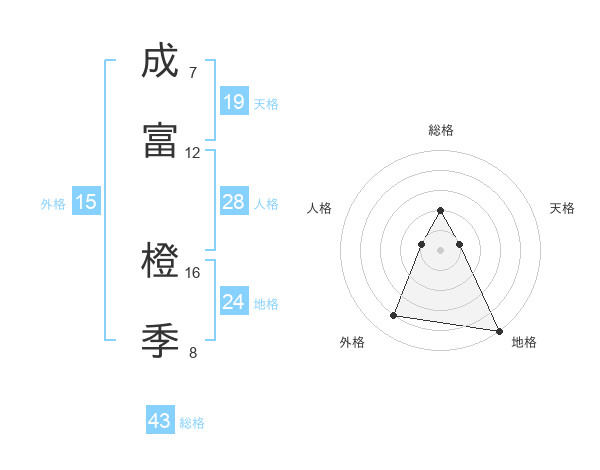 成富 橙季さんの外格は15画の4点!