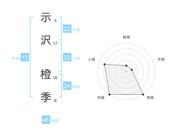 示沢 橙季さんを姓名の画数から五運を鑑定