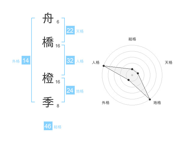 舟橋 橙季さんの総格は46画の1点!