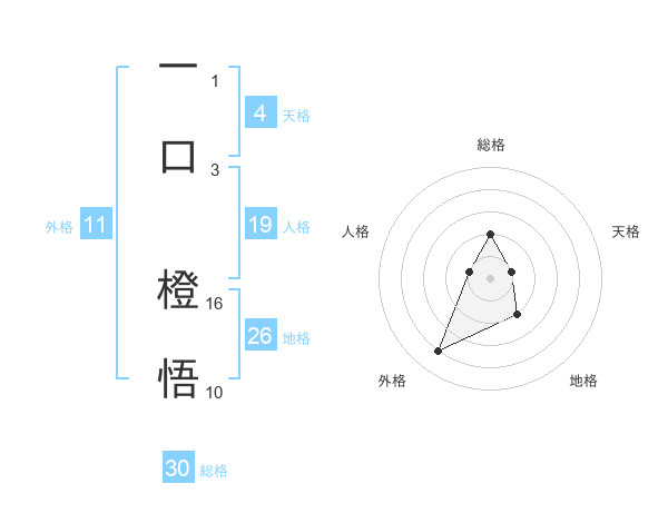 一口 橙悟さんの総格は30画の2点!