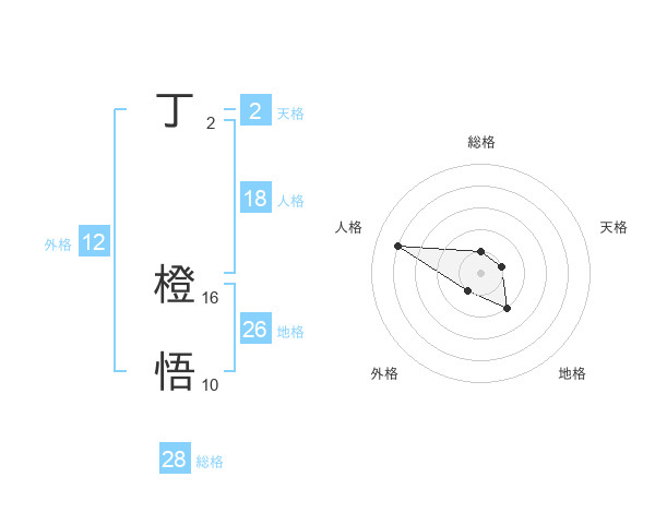 丁 橙悟さんの総格は28画の1点!