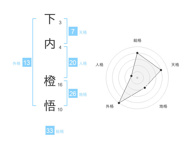下内 橙悟さんの総格は33画の4点!