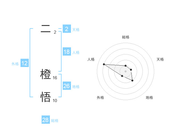 二 橙悟さんの外格は12画の1点!