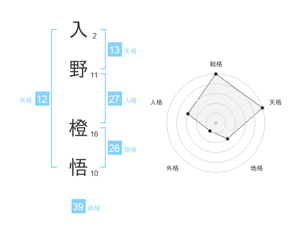 入野 橙悟さんを姓名の画数から五運を鑑定