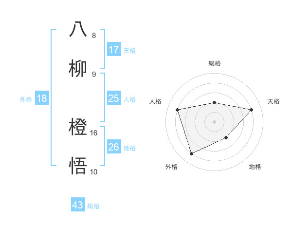 八柳 橙悟さんを姓名の画数から五運を鑑定