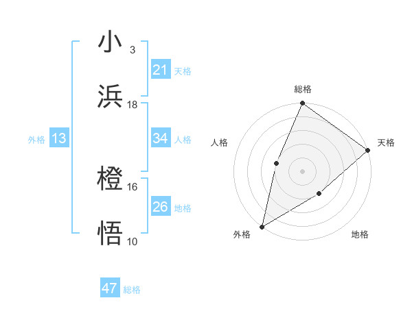 小浜 橙悟さんの総格は47画の5点!