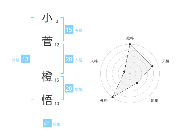 小菅 橙悟さんの総格は41画の5点!