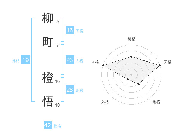 柳町 橙悟さんを姓名の画数から五運を鑑定