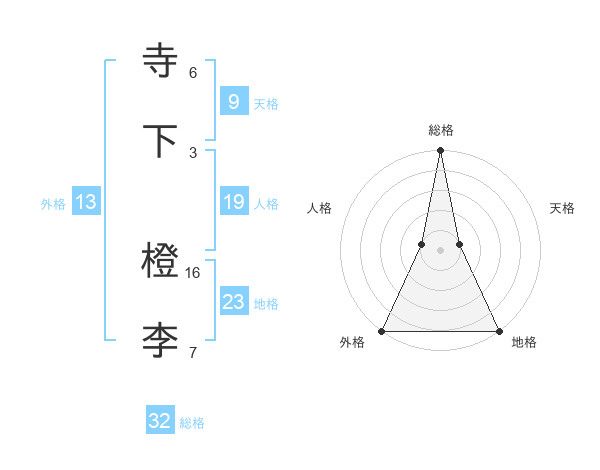 寺下 橙李さんの外格は13画の5点!