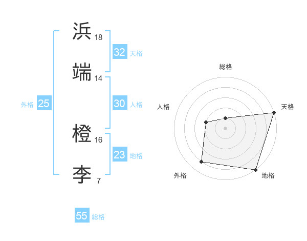 浜端 橙李さんの総格は55画の1点!