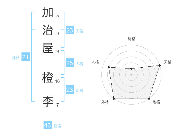 加治屋 橙李さんを姓名の画数から五運を鑑定