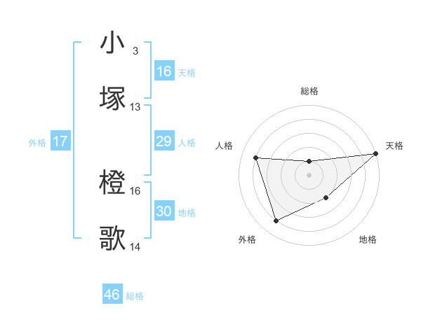 小塚 橙歌さんを姓名の画数から五運を鑑定