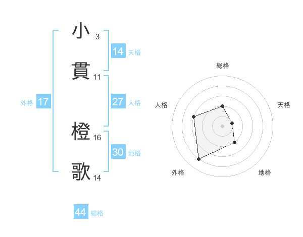 小貫 橙歌さんの総格は44画の2点!