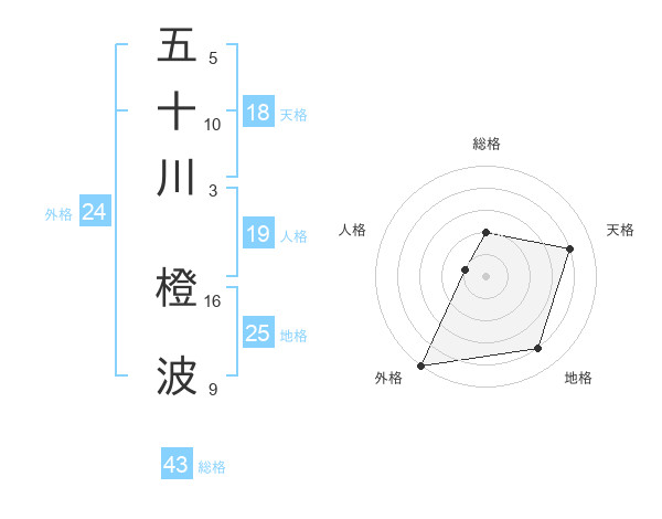 五十川 橙波さんを姓名の画数から五運を鑑定