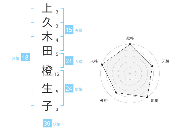 上久木田 橙生子さんを姓名の画数から五運を鑑定