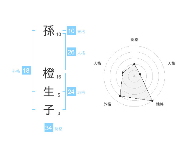 孫 橙生子さんを姓名の画数から五運を鑑定