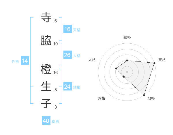 寺脇 橙生子さんを姓名の画数から五運を鑑定