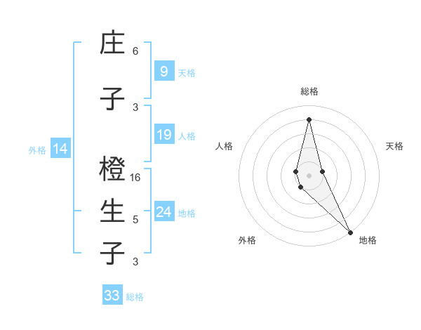 庄子 橙生子さんを姓名の画数から五運を鑑定