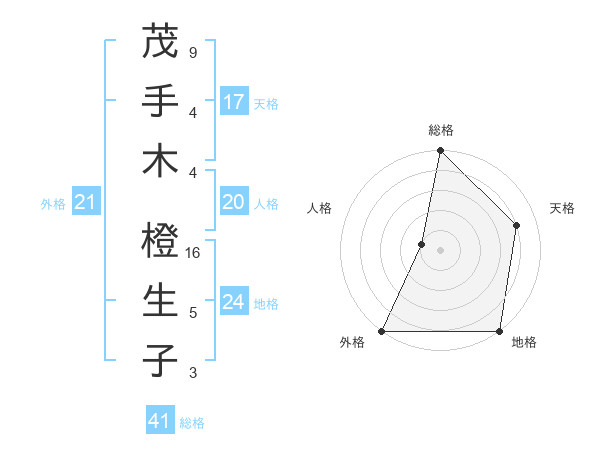 茂手木 橙生子さんを姓名の画数から五運を鑑定