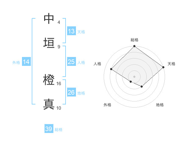 中垣 橙真さんの総格は39画の5点!