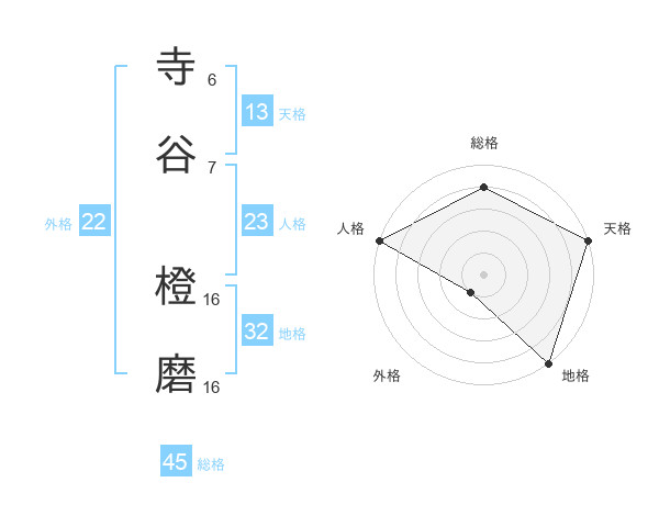 寺谷 橙磨さんの総格は45画の4点!