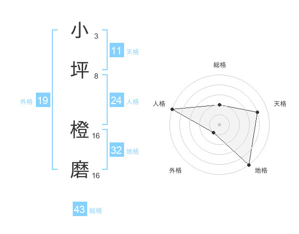小坪 橙磨さんを姓名の画数から五運を鑑定