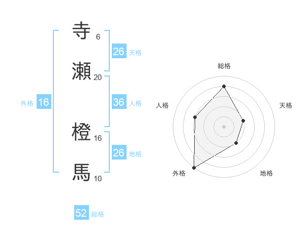 寺瀬 橙馬さんの天格は26画の2点!