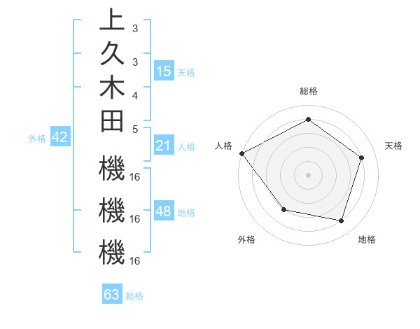 上久木田 機機機さんを姓名の画数から五運を鑑定